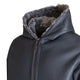 Blouson in morbido shearling nappato reversibile color grigio acciaio. Caratterizzato da ampio cappuccio, maniche lunghe e tasche inserite nei fianchi. La finitura a taglio vivo alleggerisce l'aspetto essenziale e chic del capo. Chiusura frontale con zip metallica. Disponibile in tre taglie: S M L.