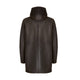 Cappotto in morbido shearling nappato con finitura leggermente anticata e pelo riccio. Il modello si caratterizza per l'ampio cappuccio che forma un sofisticato collo montante sul davanti. La chiusura centrale con zip e bottoni in corno naturale e le doppie tasche completano il look raffinato di questo capo.