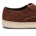 Iconica sneaker Hobo Sport con dettagli di forature, realizzata in morbida pelle scamosciata mandorla con trattamento idrorepellente. Caratterizzata da un fondo a cassetta, questa calzatura casual e sofisticata può essere indossata anche senza lacci grazie a pratici elastici interni. Suola in gomma con battistrada personalizzato antiscivolo.