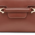 Borsa Top Handle della linea Magenta, realizzata in morbida pelle terra di Siena con effetto nappato. La chiusura a calamita � impreziosita dall'iconico morsetto in oro chiaro. Pu� essere indossata anche cross body grazie alla tracolla, per una maggiore versatilit�. Il comparto principale � organizzato con una tasca interna con zip e una taschina esterna posteriore. La fodera logata completa il modello con un tocco di esclusivit�.