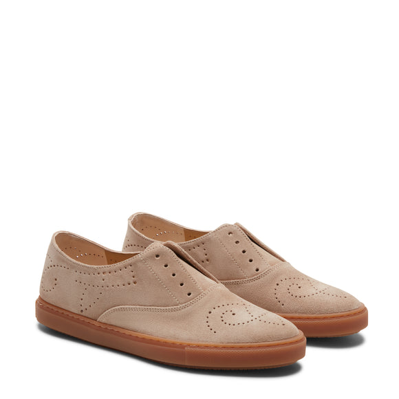 Nel modello sportivo la suola è composta interamente in gomma naturale: leggerezza e comfort ai tuoi piedi. Per entrambe le proposte la fodera interna è realizzata in fibra di bamboo naturale ed il sottopiede estraibile é interamente ottenuto da fibre di Pet, che garantiscono un’elevata traspirabilità ed un assorbimento ottimale dell’umidità. Spiccano anche le cuciture, realizzate in cotone, capaci di mettere in risalto gli aspetti artigianali del prodotto.