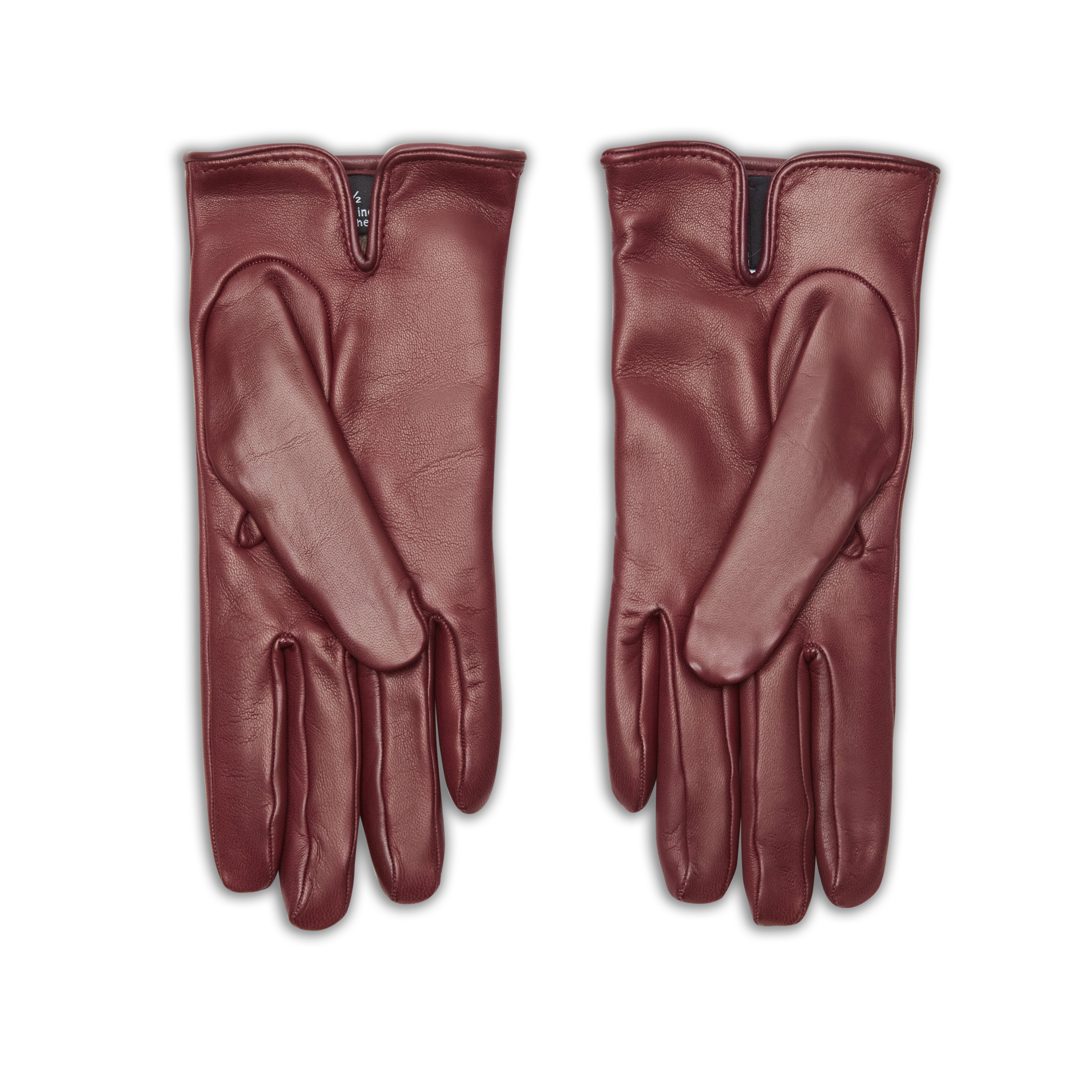 Guanto da donna dal design essenziale, realizzato in morbida nappa color mosto. Caratterizzato da linee pulite e cuciture risvoltate. Sottomano con spacco.