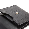 Portafoglio compatto realizzato in pelle stampata effetto coccodrillo, le dimensioni permettono di tenerlo comodamente in borsa. Il design interno permette di organizzare al meglio lo spazio con uno scomparto per banconote, sei fessure per tessere, due tasche extra. Il portamonete esterno è provvisto di chiusura con bottone automatico. L10xH10