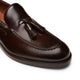 L'iconico Brera è il mocassino con nappine di Fratelli Rossetti, realizzato in pelle color ebano rifinita artigianalmente con spazzole abrasive per accentuare l'effetto chiaro scuro. Calzatura dal look raffinato per un outfit impeccabile. Suola in cuoio con mezzo tacco in gomma.