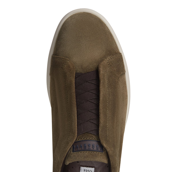 Coniuga eleganza e comfort la sneaker realizzata in morbida pelle scamosciata. Grazie agli elastici incrociati si può indossare agevolmente come una slipper. Soletta interna estraibile e traspirante. Suola in gomma bicolore, leggera e flessibile.