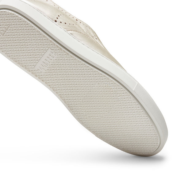 Iconica sneaker Hobo Sport con fondo a cassetta e dettagli di forature, realizzata in morbida pelle color sabbia con effetto metallizzato. Calzatura casual e raffinata che può essere indossata senza lacci grazie a pratici elastici interni. Suola in gomma con battistrada personalizzato.
