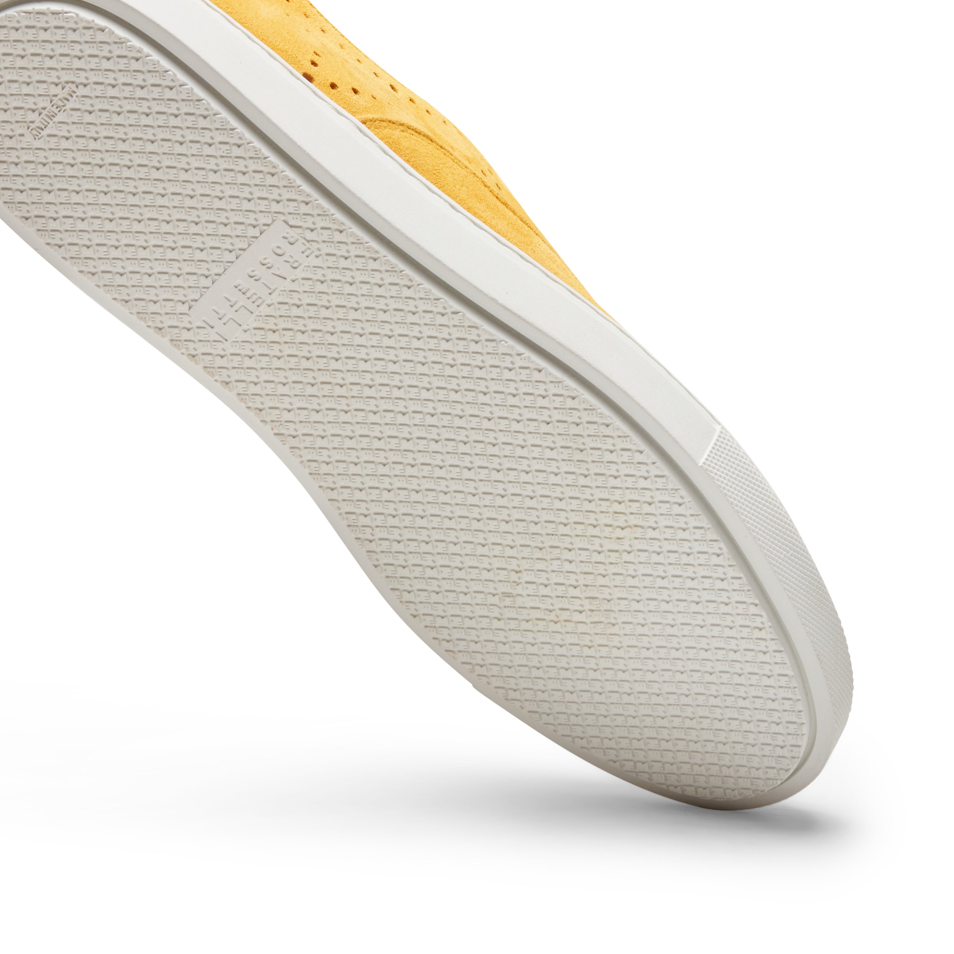 Iconica sneaker Hobo Sport con fondo a cassetta e dettagli di forature, realizzata in morbida pelle scamosciata color giallo. Calzatura casual e raffinata che può essere indossata senza lacci grazie a pratici elastici interni. Suola in gomma con battistrada personalizzato.