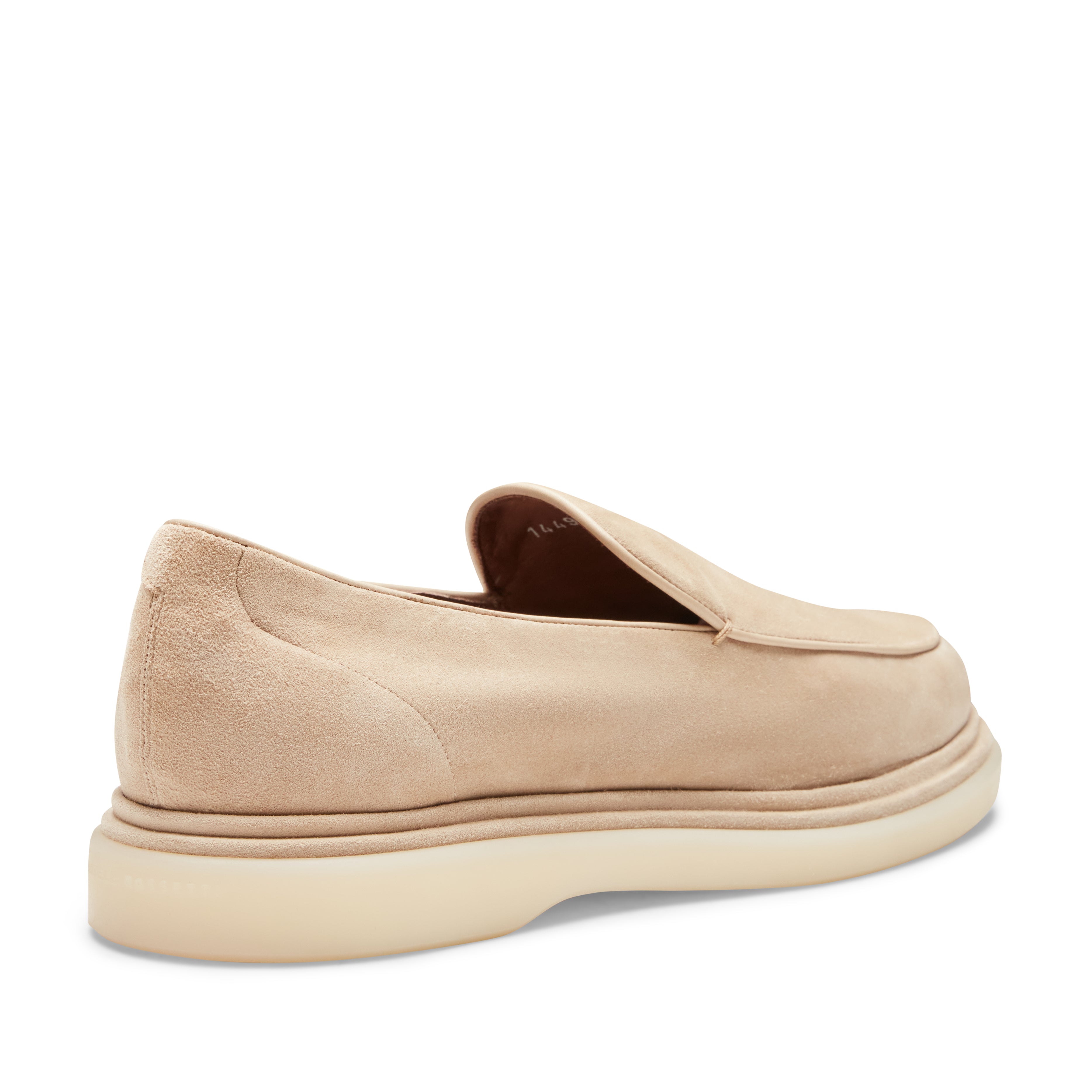 Mocassino liscio realizzato in morbida pelle scamosciata color latte. Calzatura sfoderata e con suola in gomma, dal look estivo ed informale.Caratterizzata da dettagli di stile come i punti a mano laterali e il guardolo ricoperto della stessa pelle della tomaia.