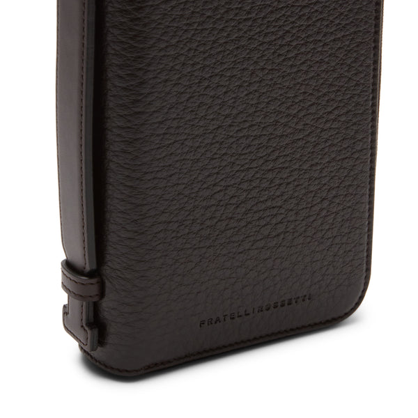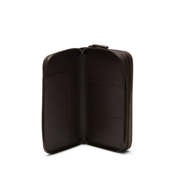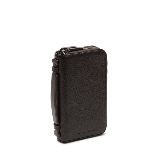 Organizer<br>Vera pelle<br>Dimensioni: H20.5 x L12<br>Doppia zip<br>3 sezioni<br> 1 scomparto interno portadocumenti/carte <br>1 scomparto con portamonete<br>Maniglia esterna<br>Made in Italy