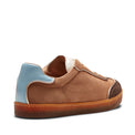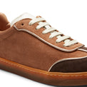 Sneaker dal look vintage interpretata in chiave contemporanea, realizzata in morbida pelle scamosciata nelle nuances autunnali del cognac e cacao. Calzatura che coniuga artigianalità e stile. La suola è in gomma naturale super flessibile e dona all'intera calzatura leggerezza e comfort senza eguali.