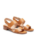 Linee essenziali caratterizzano questo sandalo dal look selleria, realizzato in pelle anticata color nocciola. Il design � definito da ampie fasce con profili a taglio vivo cerati. La fibbia posizionata sul collo del piede dona lucentezza e carattere al modello. Completa il sandalo il comodo tacco da 30 mm, ideale per un'eleganza quotidiana.