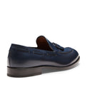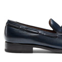 L'iconico mocassino Brera si veste d'estate nella versione realizzata in morbida pelle liscia color blu marine. Si caratterizza per un'esclusiva lavorazione artigianale che dona alla calzatura un leggero effetto anticato e una maggiore lucentezza.