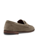 Raffinato mocassino a fascetta realizzato in morbida pelle scamosciata verde muschio. La calzatura è realizzata con la tecnica del cucito e rivoltato, ispirata alla tradizionale lavorazione Goodyear, che prevede la cucitura diretta della tomaia alla suola e il successivo rivoltamento. Il risultato è una suola particolarmente morbida, una calzata estremamente confortevole e una maggiore resistenza nel tempo.