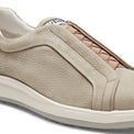 Coniuga stile e comfort la sneaker realizzata in morbida pelle color verde salvia con effetto nabuck. Grazie agli elastici incrociati si pu� indossare agevolmente come una slipper. Suola in gomma bicolore leggera e flessibile.