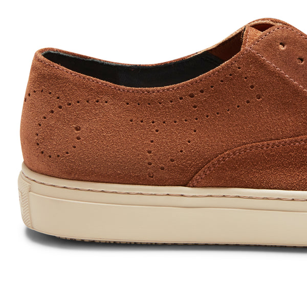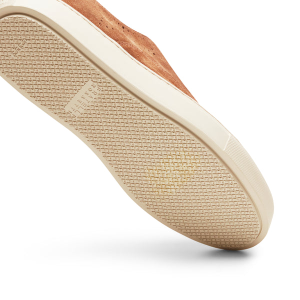 Ikonischer Hobo Sport Sneaker mit perforierten Details aus weichem cognacfarbenem Wildleder mit wasserabweisender Behandlung. Dieser lässige und zugleich edle Schuh mit Kastensohle lässt sich dank praktischer Gummizüge im Inneren auch ohne Schnürsenkel tragen. Gummisohle mit speziellem, rutschfestem Profil.