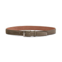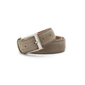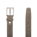 Herrengürtel aus afrikanisch-grünem Veloursleder mit einfacher Naht. Die rechteckige Schnalle und das gelaserte Logo runden das schlichte Design ab. Der Allrounder lässt es sich bequem an Ihre Größe anpassen.
