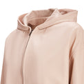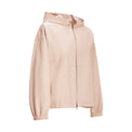 Giubbino dal design essenziale e contemporaneo, realizzato in morbida nappa color rosa cipria. Il modello è dotato di pratico cappuccio e chiusura frontale con zip che offrono comfort e funzionalità. La linea morbida, con spalla leggermente scesa, è valorizzata da fondo e polsi elasticizzati che assicurano una vestibilità confortevole. Un capo versatile, ideale per uno stile casual e femminile.