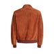 Giubbino bomber realizzato in morbida pelle scamosciata nell'intramontabile color cuoio. Capo caratterizzato da chiusura frontale con zip, colletto a revers, polsi e fondo provvisti di fascia in maglia elastica a coste in tono. Tasche applicate con bottoni in corno naturale. Modello evergreen per un look raffinato e rilassato.