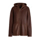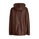 Giacca realizzata in morbido shearling reversibile a pelo riccio color marrone castagna. Questo modello si caratterizza per la scelta di un pellame particolarmente morbido e leggero, che offre comfort e calore contro il freddo, unito alla raffinatezza delle lavorazioni. Il design essenziale del capo è completato da tasche a taglio e da un ampio cappuccio.