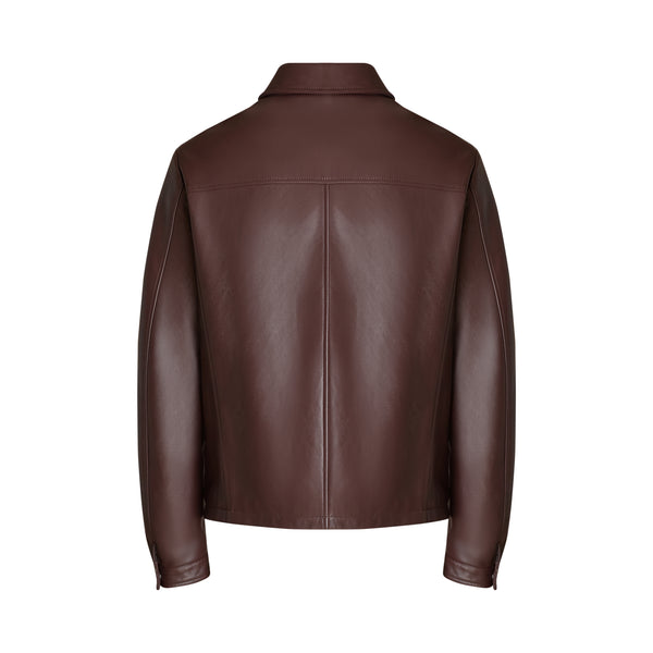 Giubbino realizzato in morbida nappa color mosto dal look moderno e raffinato. Si caratterizza per il collo a camicia e la chiusura centrale con zip a doppio cursore. Completano il look essenziale due tasche a taglio verticale.
