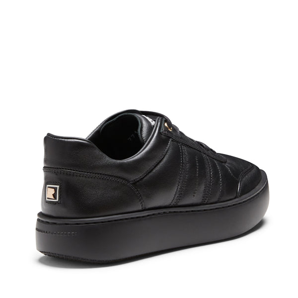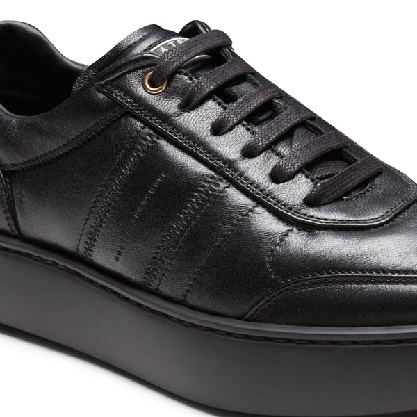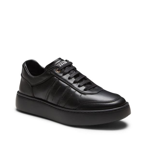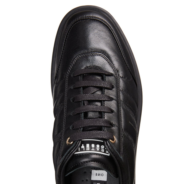 Sportlicher dynamischer Sneaker aus weichem schwarzen Leder mit gepolsterten erhabenen Details in 3D-Optik, die dem Modell Charakter verleihen. Mit Kassettensohle aus Gummi, die eine rutschfeste Laufsohle mit Logo aufweist.