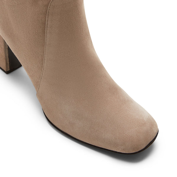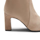 Schlichter Stiefel mit Röhrenschaft aus weichem seilfarbenen Veloursleder. Das Modell zeichnet sich aus durch seine eckige Form und den 8 cm hohen Absatz und -ist ein Muss für edle Looks. Ledersohle mit Gummieinlage.