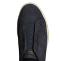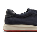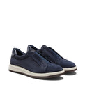 Sneaker aus weichem Veloursleder mit wasserabweisender Behandlung, der Eleganz und Komfort vereint. Dank der gekreuzten elastischen Details lässt er sich problemlos wie ein Slipper tragen. Herausnehmbare atmungsaktive Innensohle. Leichte biegsame zweifarbige Gummisohle.