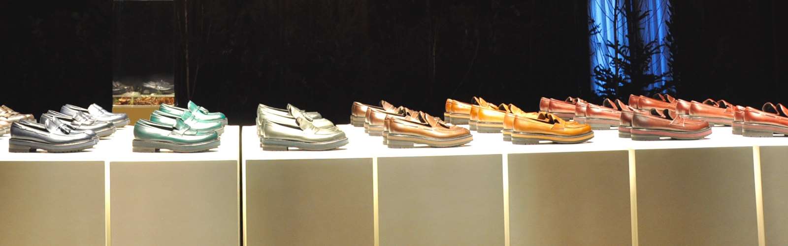 Three loafer designs have been presented: one with a stripe, one with a fringe and the timeless, iconic Brera. They all have sizeable soles and matching colours on the midsole and the upper, emphasizing the craftsmanship and quality of these exclusive products.