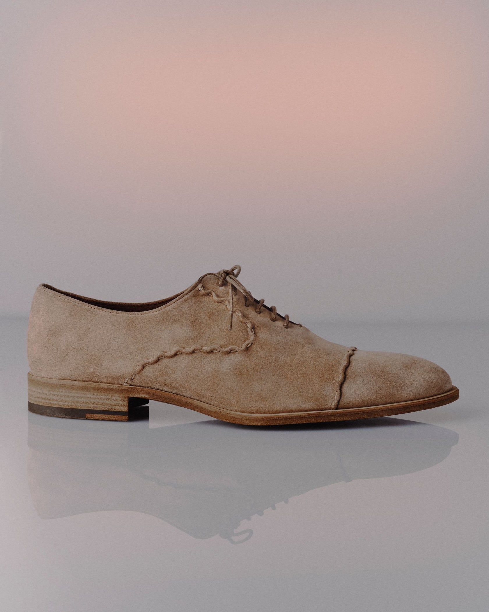 The sole, finely crafted with a smooth welt, is dyed using the All Over technique, a special finishing process in which every detail of the shoe takes on the same color as the upper. This finish enhances the shoe’s overall aesthetics, adding elegance and craftsmanship.