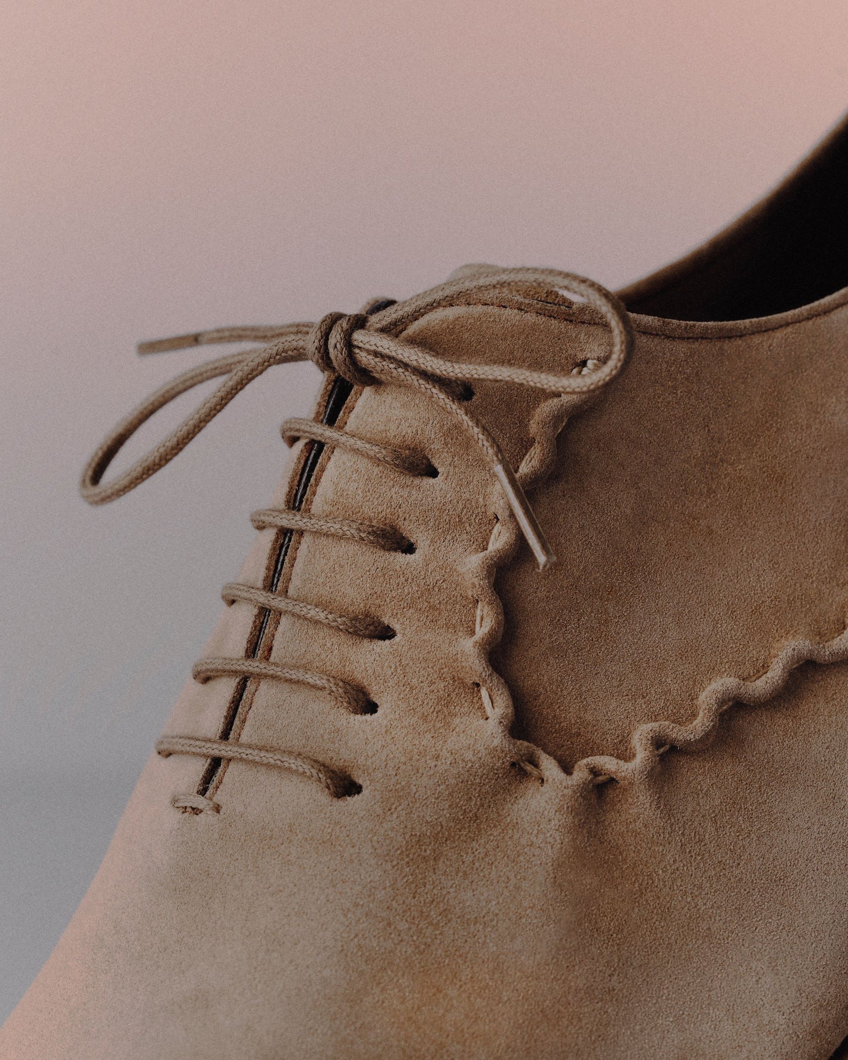 The “lettuce leaf trim” is used for the brand’s two icons: the Brera loafer with its timeless tassels and the quintessential La Giusta lace-up.
