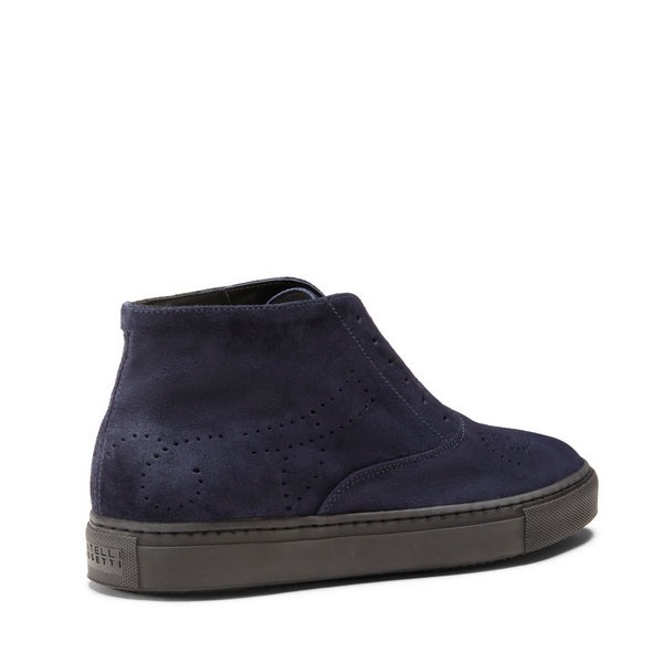 Iconic Hobo Sport sneaker with perforation details, interpreted as a desert boot. Made of soft suede with an unusual glossy look. Casual and refined, it can be worn without laces. Removable and breathable insole. The rubber cupsole features a custom tread and is 55 mm high.