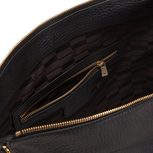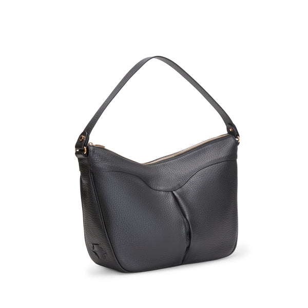 Shoulder bag from the Claire line in two materials, soft suede with smooth leather inserts in the same tone. Refined and roomy, perfect for everyday use. Zip closure. H 26 x L 28 x W 10 cm.