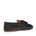 Luxury Brera slipper in soft black nappa leather. Characterised by its sacchetto construction, an artisanal technique that involves sewing the lining around the last like a glove, creating a shoe without visible seams. This workmanship ensures superior comfort and an extremely refined aesthetic. The soft sole with a nubuck-effect texture and foldable heel allow it to be worn both indoors and outdoors, to enjoy relaxing moments with a perfect balance of versatility and style.