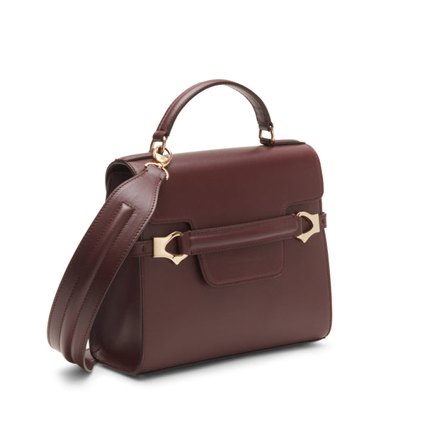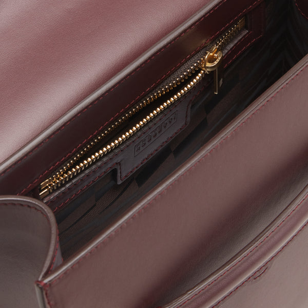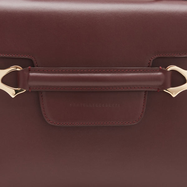 Top Handle bag from the Magenta line made of soft smooth leather. Magnetic closure Characterized by the iconic light gold clamp. With the possibility of using it over the shoulder. The main compartment is equipped with a small internal zip pocket and a pocket on the external back. Logoed lining. H21xL25xL9