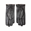 Refined men’s glove made of soft black nappa leather with three decorative handsewn rows on the back. Elasticated wrist. A particular detail on the cuff highlights the edging of the lining.
