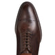 Timeless elegance stands out in this tapered Oxford shoe. Made of soft leather that is dyed ebony brown by hand dabbing. The expert craftsmanship creates a particular effect with deeper shades of color. The perforations embellish the toe and the edging on the upper. Hand-painted leather sole.