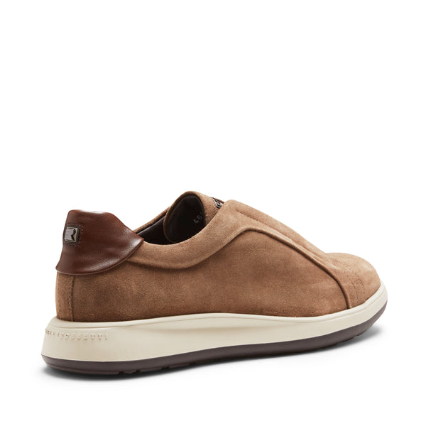 The perfect combination of elegance and comfort for this sneaker in soft, water-repellent mud-colored suede. The crossed elastic bands allow you to wear them easily, like a slipper, combining practicality and style. The two-tone sole in lightweight and flexible rubber ensures long-lasting comfort, making this shoe versatile for any occasion.