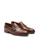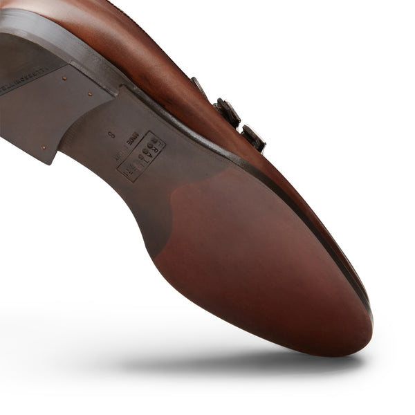 Refined artisanal-inspired loafer made of soft tobacco brown leather characterised by an exclusive craftsmanship that gives the shoe a slightly antiqued effect and an enhanced shine. Finished with two straps that accentuate the exclusive look.