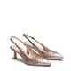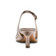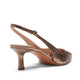 Slingback sandal with an easy-chic allure made of soft bronze laminated leather. It is characterised by the unique laser processing technique that simultaneously pierces and waxes the various parts of the upper, enhancing its decoration.