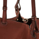 Raffinata tote bag della linea Royal realizzata in pelle scamosciata color cuoio con manici in pelle liscia rifiniti da cuciture a contrasto. Morbida e capiente, è suddivisa in due scomparti da una tasca centrale con zip. Impreziosita dal pendente rimovibile logato R dorato e tridimensionale, simbolo della maison.