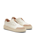 Sneaker with a dynamic, metropolitan look, made of soft, smooth leather and suede in rice white and sand tones. The upper features details that evoke the perforations of the iconic Hobo shoe. The cupsole is made of a lightweight and durable rubber compound, featuring the R logo on the side and a custom non-slip tread.