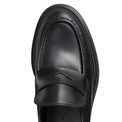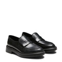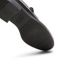 Loafer with strap made of soft smooth black leather with a light antique effect. Characterized by a masculine and essential look, inspired by Anglo-Saxon tradition. The lightweight and durable rubber sole ensures comfort, making this shoe functional and versatile.