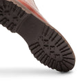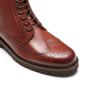 Lace-up brogue boot with inside zip inspired by traditional Anglo-Saxon shapes. Made of smooth Sienna-coloured leather, the leather is dipped in dye and then finished with abrasive brushing by expert hands. Shoe that combines hand-crafted style and functionality thanks to the extralight rubber lug sole with leather midsole.
