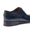 Cap-toe Oxford shoe with a timeless look, made of soft navy blue leather characterised by an exclusive craftsmanship that gives the shoe a slightly antiqued effect and an enhanced shine.