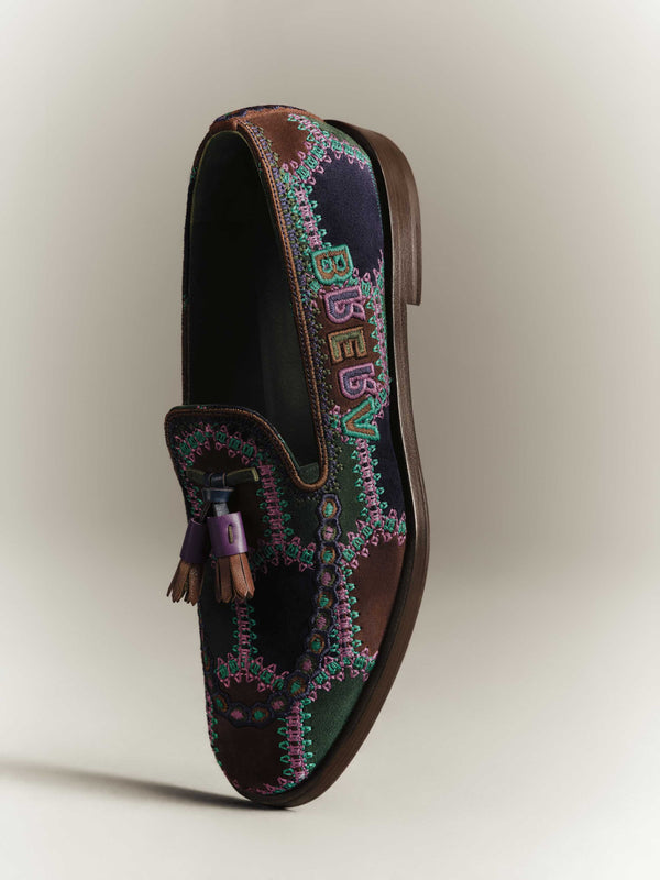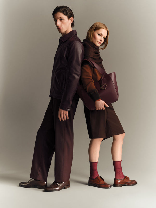 The undisputed star is the iconic Brera loafer, available in a range of styles, all celebrating the combination of traditional craftsmanship and creative innovation. The collection includes the classic version in soft almond-coloured leather, as well as more imaginative versions such as the hand-painted Cut, the embroidered version, the wool fabric version and the more daring animal print version.