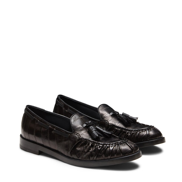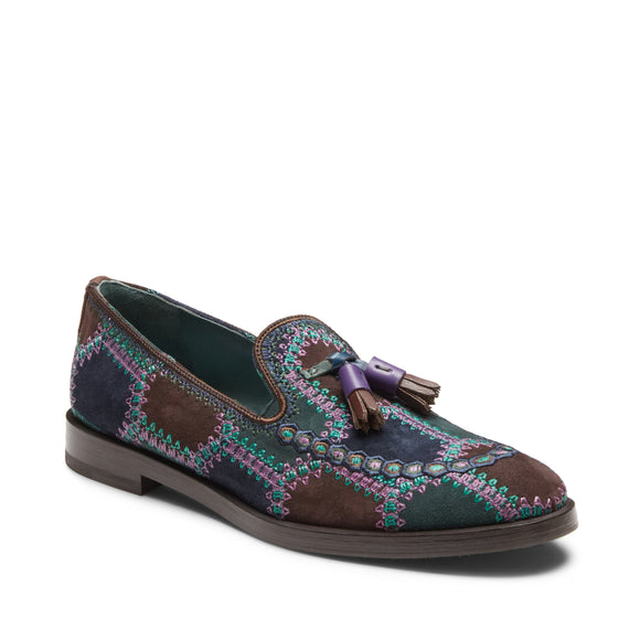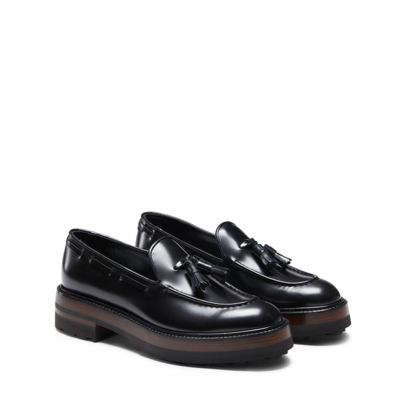 The undisputed star is the iconic Brera loafer, available in a range of styles, all celebrating the combination of traditional craftsmanship and creative innovation. The collection includes the classic version in soft almond-coloured leather, as well as more imaginative versions such as the hand-painted Cut, the embroidered version, the wool fabric version and the more daring animal print version.