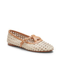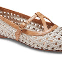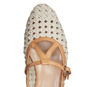 Refined and feminine, this strappy ballet flat is made of smooth ivory-coloured leather with natural beige details. The fine craftsmanship of the threading features equally spaced holes in the upper making the design light and ideal for the summer season. Leather sole.br>Art. 68246