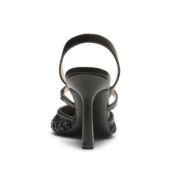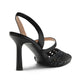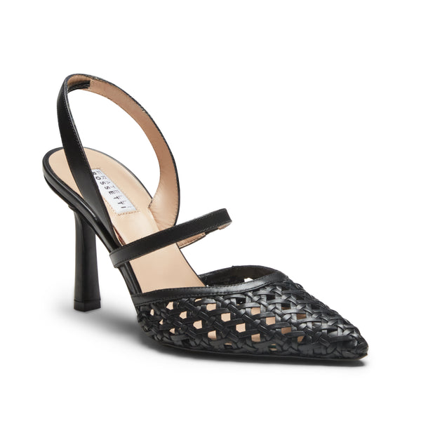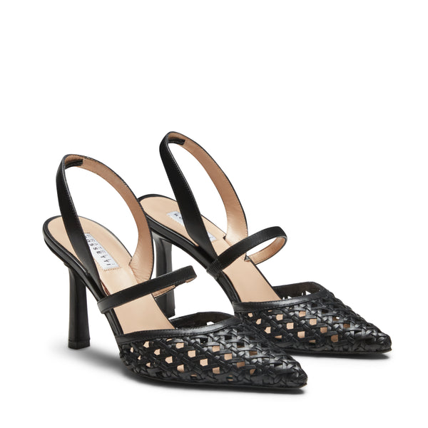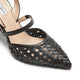 Refined and feminine slingback sandal made of soft, finely woven black leather. The fine craftsmanship of the threading features evenly spaced holes in the upper. Finished with a strap on the instep that makes the silhouette appear more slender.
