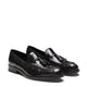 For the winter season, the iconic Brera loafer is crafted in exquisite black eel leather, renowned for its natural lustre. This interpretation lends greater character to the shoe, thanks to the exclusive craftsmanship involving hand-formed folds from the vamp. Leather sole with rubber half-heel.