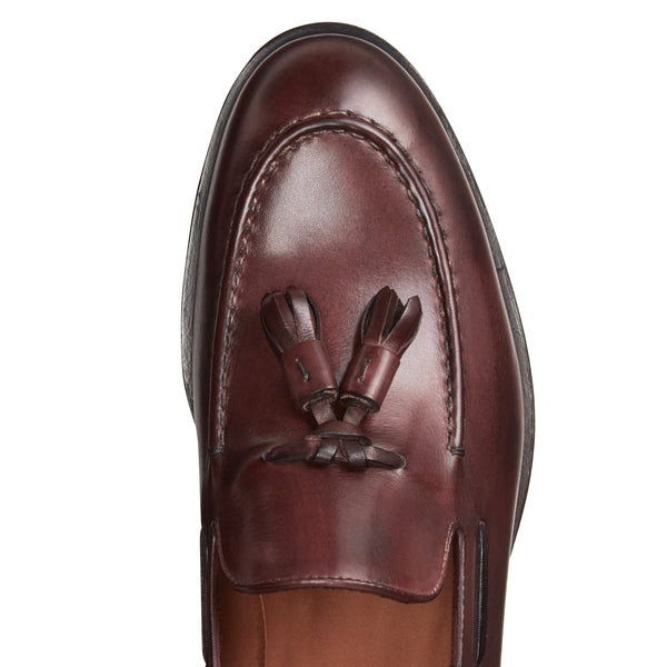 The iconic Brera is Fratelli Rossetti's tassel loafer, crafted from soft leather that's hand-dyed in burgundy. The expert craftsmanship creates a particular effect with deeper shades of color. Hand-painted leather sole.